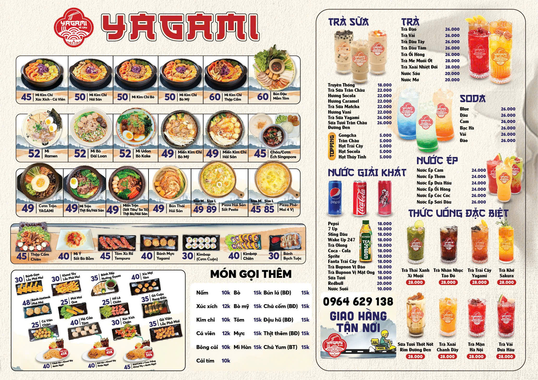 Menu thức ăn, thức uống của team Yagami được nghiên cứu cập nhật bắt trend nhanh chóng để phù hợp với thị trường