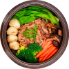 Nổi bật với nước dùng đậm đà hương vị thảo mộc đặc trưng. Sợi mì dai mềm kết hợp với thịt ba chỉ bò béo ngậy và bò viên dai giòn sần sật siêu ngon độc đáo.