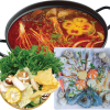 Hải sản tươi ngon như tôm, mực, bạch tuộc. Thịt bò, thịt heo hảo hạng. Topping thả lẩu cực dính: Cá viên, ốc nhồi, thanh cua, viên thả lẩu,…
